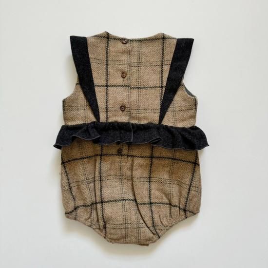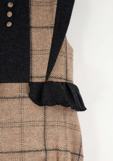 肩にはコントラストのレイヤー、ウエストにはヨークとフリルが付いています。