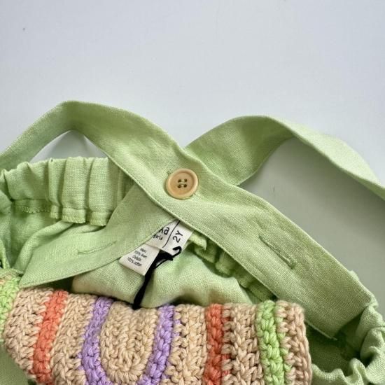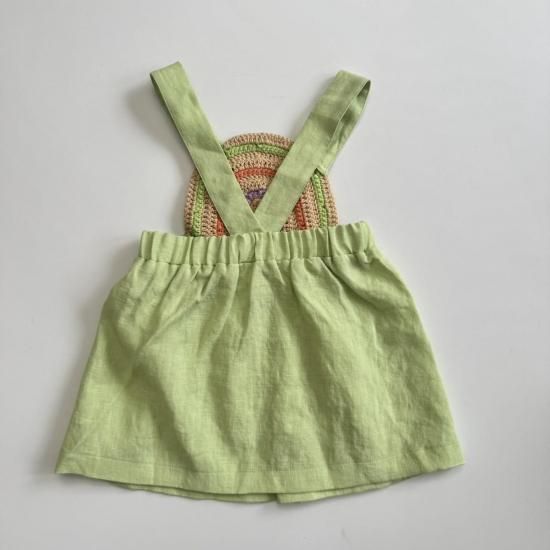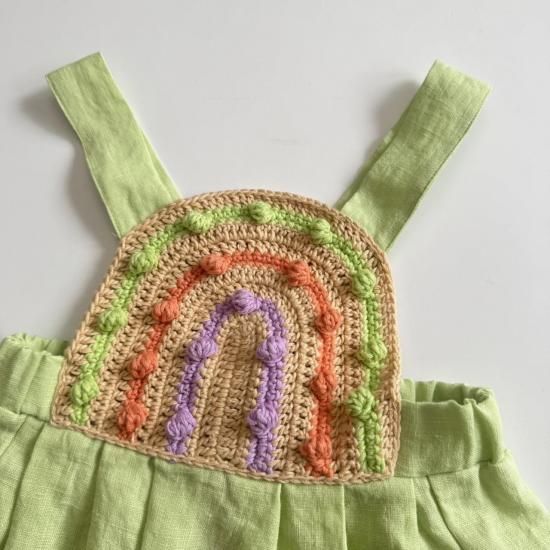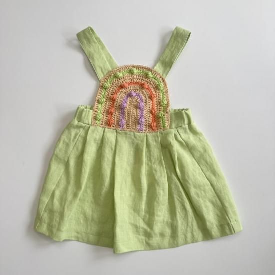 胸当ての虹のようなモチーフが素敵なピナフォレ。