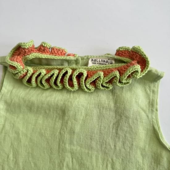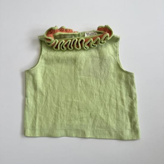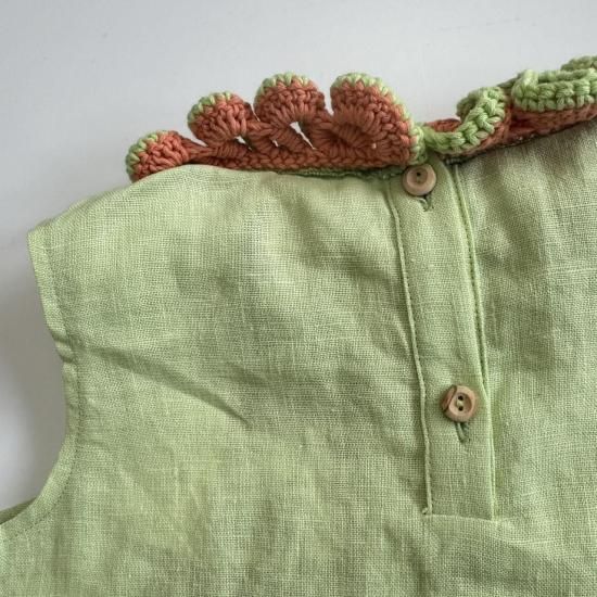 かぎ針編みの襟が付いたリネンのノースリーブトップス。