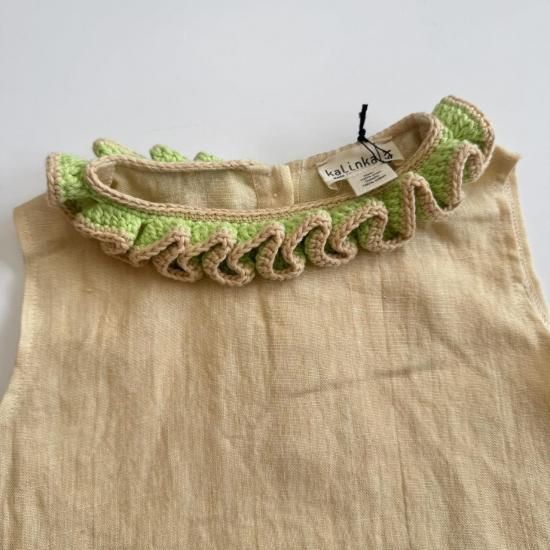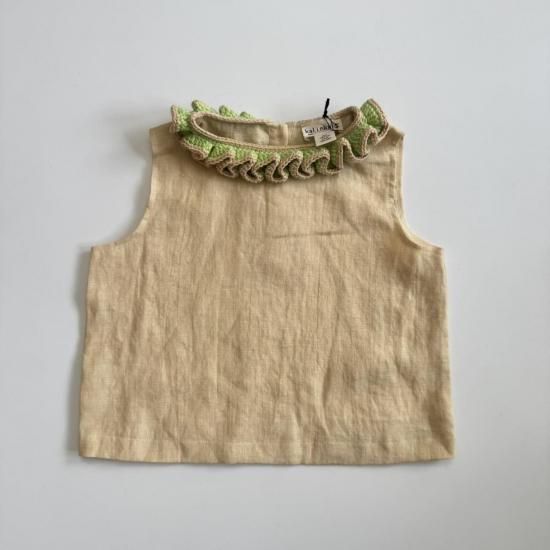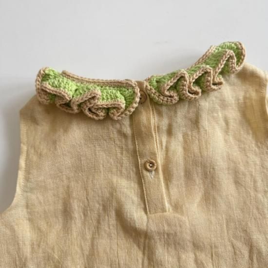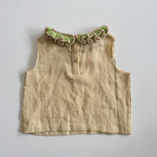 かぎ針編みの襟が付いたリネンのノースリーブトップス。