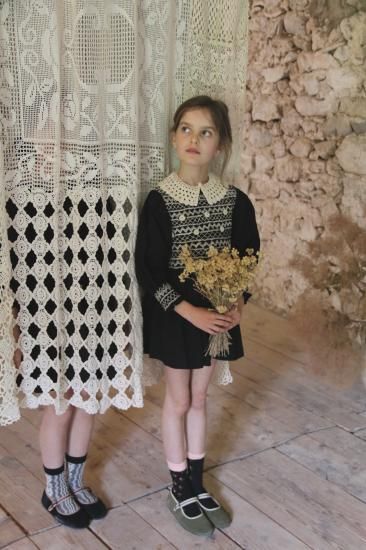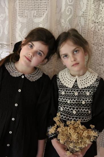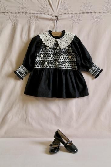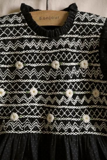 身頃と袖口には、とても美しいスモッキング刺繍が施されています。