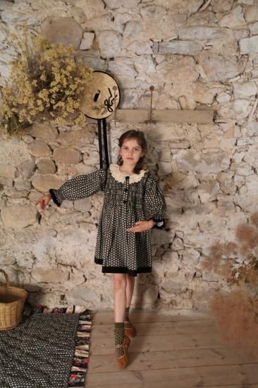 レースの衿が可愛く、ブラックの切り替えがアクセントになっています。