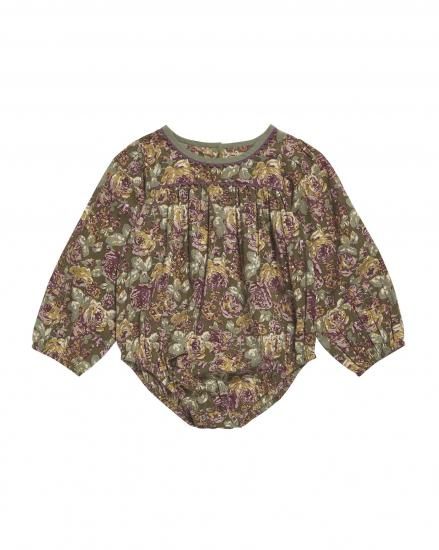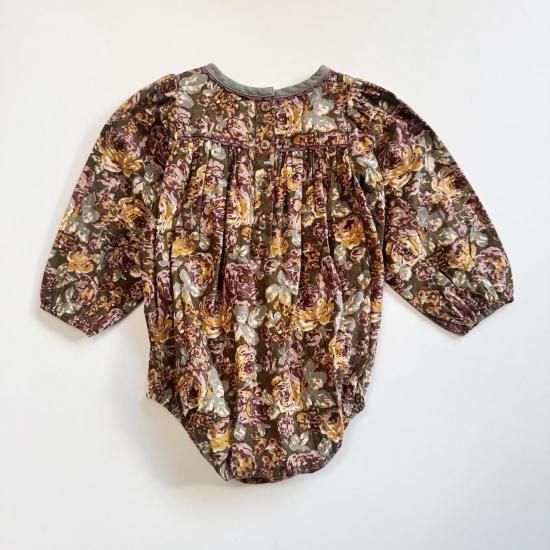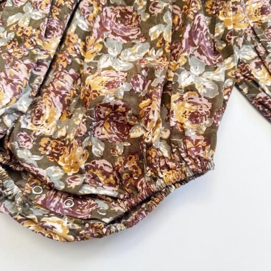 可愛らしさとシンプルさが共存するLily Romperは、壁紙のような花柄生地が特徴の一着です。