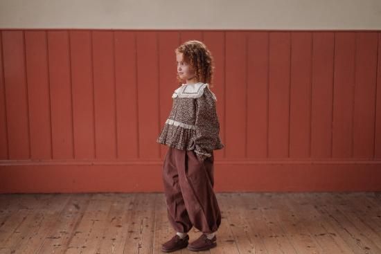 オーガニックのブラッケンフローラル生地を使用した、ヴィンテージ風の可愛らしいセーラーブラウスです。
