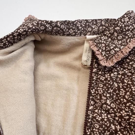 襟にはトリムが施され、可愛らしいコントラストのポケットが付いています。