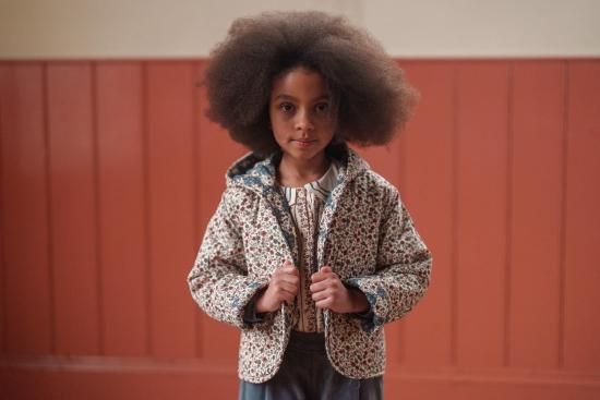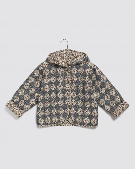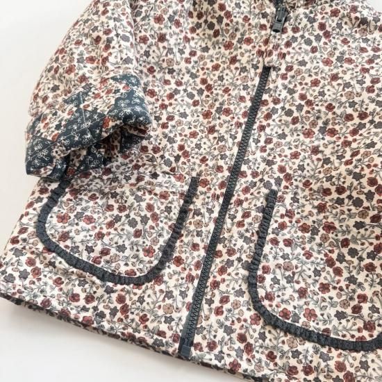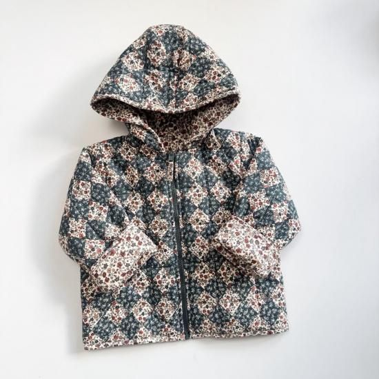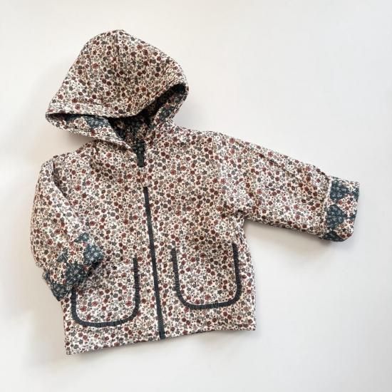 ジャケットにはファスナーが付いており、たっぷりとしたフードと愛らしいコントラストのついたパッチポケットが一方についています。